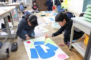 5年生教室では、運動会の看板作り。どんな看板ができあがるのか楽しみです。