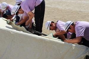 今日は、6年生が運動会の会場準備を行いました。