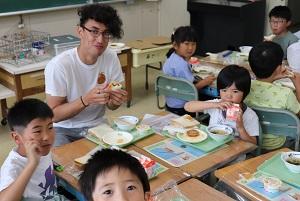 友達や先生と談笑しながら、楽しい給食の時間です。