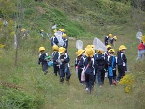 2020年10月16日 15時35分今日は1年生が、学校裏の「万本桜の山」に虫さがしに出かけました。