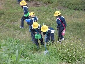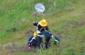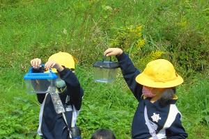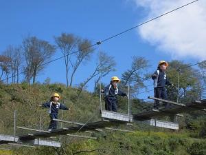 最初は肌寒かったのですが、途中からは日差しが出てきて気持ちよく虫さがしができました。「吊り橋」に初挑戦する子どもたちもいました。
