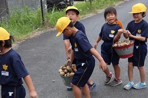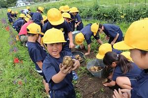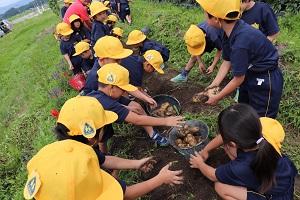 今日は1年生がジャガイモほりを体験しました。