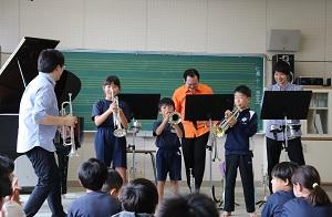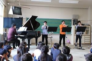 3人のトランペッターと1人のピアニストをお招きし、演奏会が開かれました。子どもたちは、生で聴く、素敵な音の響きに時間を忘れて聴き入っていました。