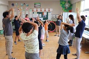 読み聞かせに合わせて、みんなで楽しく体を動かしていました。