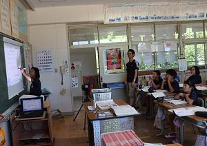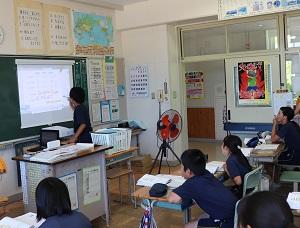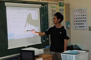 子どもたちも操作することができます。この時は、スクリーンに書き込みながら発表していました。