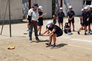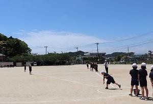 4年生が体力テストを実施中。