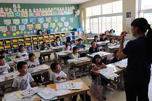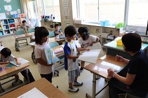 こちらも1年生。学校から配られたプリントについての説明をしっかり聴いていました。