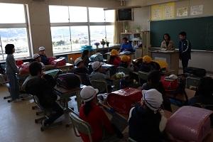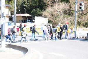 登校班ごとに集まって、登校班のきまりや、歩き方などについて確認しました。