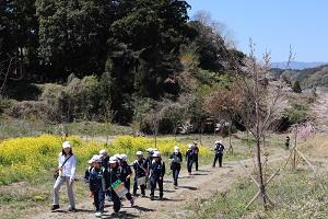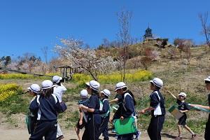 3年理科の春探し。六小の裏には、こんなにもすてきな山があるのです。