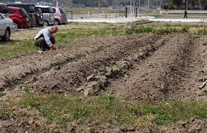 校庭の脇では、用務員さんが学習に使う畑の手入れをしてくださっていました。