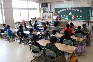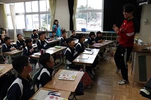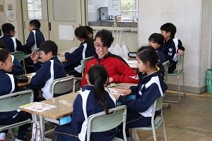 今年度最初のALTの授業です。子どもたちはALTと一緒に英語のゲームで楽しんでいました。