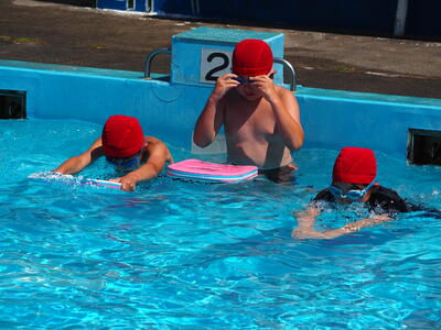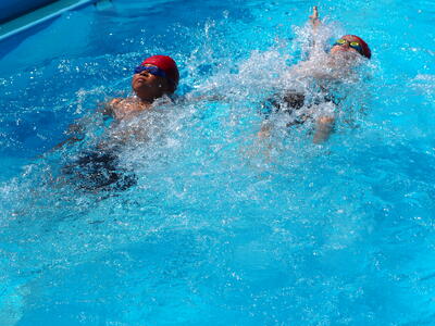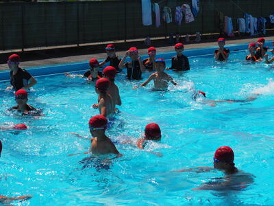 今日も朝から汗ばむ陽気で絶好のプール日和となりました。5・6年生が気持ちよさそうに泳いでいました。