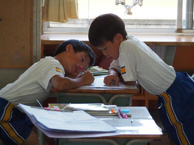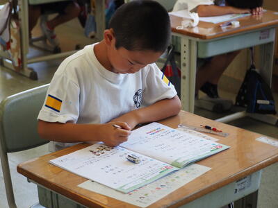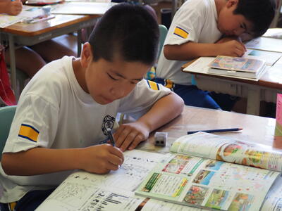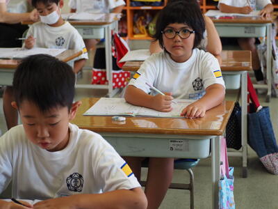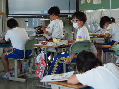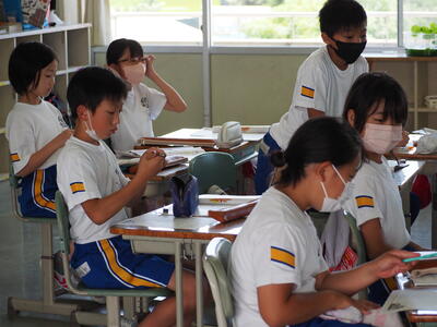 本日4校時の授業の様子を紹介します。暑い中でも子どもたちは元気に頑張っています。