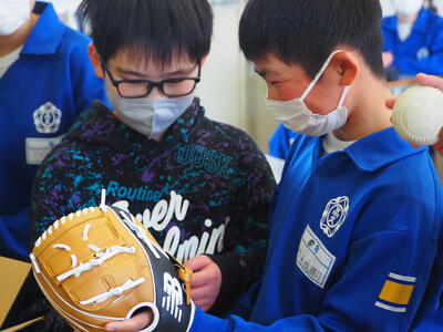 大谷選手からグラブが届きました。早速6年生にお披露目し、使ってもらいました。今後はすべての学年に回していく予定です。