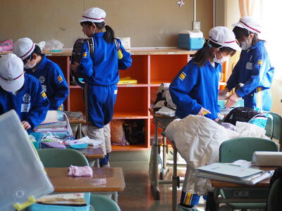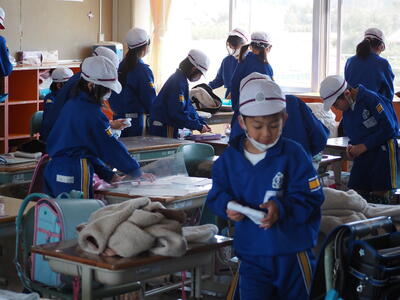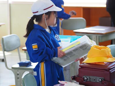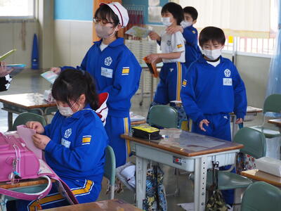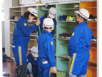 卒業式や修了式を明日に控え、全校児童で愛校清掃を行いました。教室のロッカーや特別教室など、普段手の回らないところまで丁寧に清掃を行いました。
