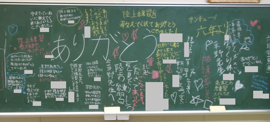 6年生の子供たちの優しさばかりでなく、ともに頑張ってきたからこそ分かち合える思いやチームワークが詰まった、メッセージボードでした。 6年生のみんな、草野先生、お疲れ様でした。