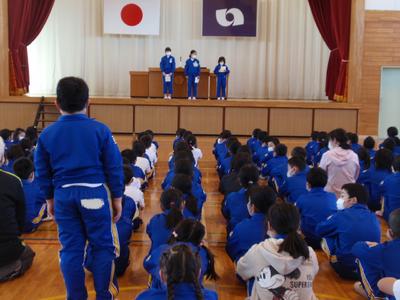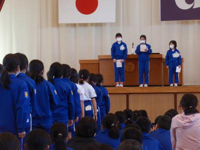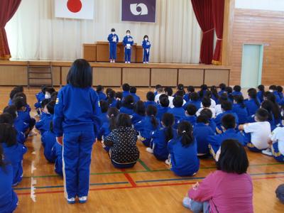 団体の紹介もあり、3年生が毎朝「長なわとび」をが頑張っていることを4年生が紹介してくれました。素晴らしい上級生ですね。