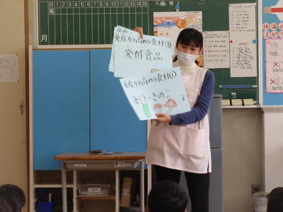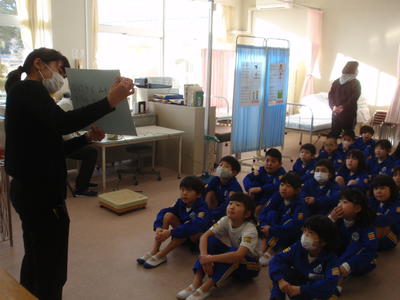 はじめに、養護教諭から「食と健康」に関する講話を行い、風邪やインフルエンザにかからない丈夫な体づくりへの意識を高めました。