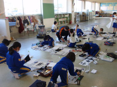 書きやすい場所を自分で選んで書きました。みんな、息をのむほど集中して取り組んでいました。