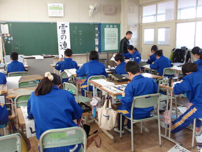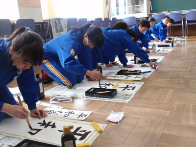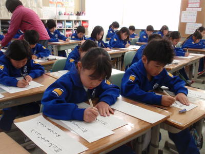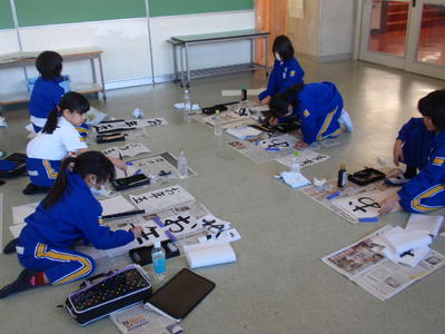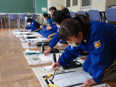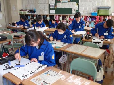 なお、今週「校内書きぞめ会」で書いた作品は、審査の後、1月21日から各学級の廊下等に展示されますので、ぜひご覧になってください。