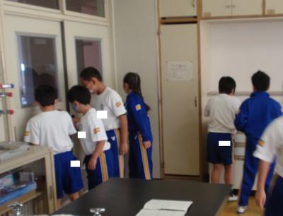 理科室から楽しそうな声が…のぞいてみると、3年生が理科で磁石の学習をしていました。身の回りの物の中から、「磁石に付くものと 付かないもの」を探していました。