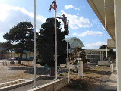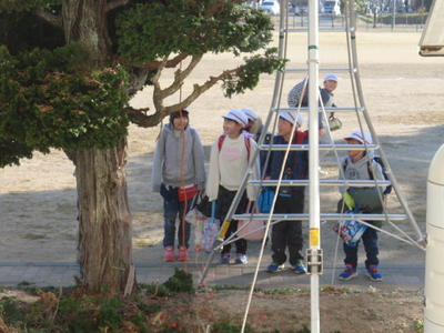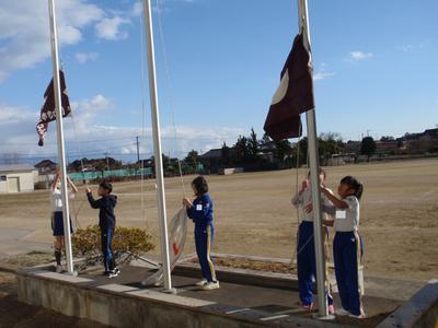 6年生がアリオスに出かけているため、今日は5年生が国旗の降納をしてくれました。