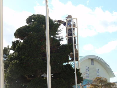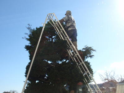 業務員の小林さんが、寒風吹きすさぶ中、樹木の手入れをしてくれています。樹形を整えたり成長を促したりするのはもちろんですが、子供たちの安全を第一に考え、いろいろな所に気を配ってくれます。