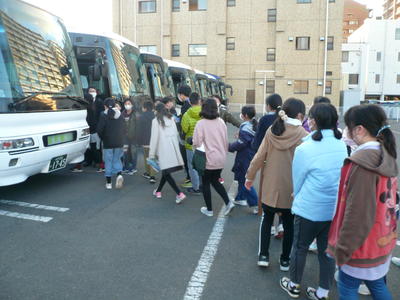 夏井小学校の子どもたちと一緒にバスで移動しました。劇団四季の皆様、協賛各社の皆様、素晴らしい機会をご提供いただき、ありがとうございました。