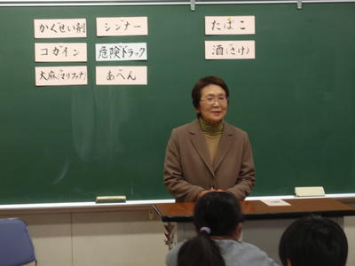 保護司で、福島県薬物乱用防止指導員の石田 冴子 様 を講師にお迎えし、薬物が体に与える影響や依存症の恐怖、身の周りにあふれる薬物と誘惑などについて、お話いただきました。