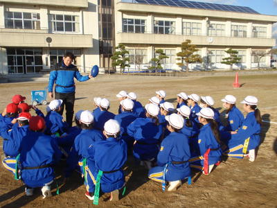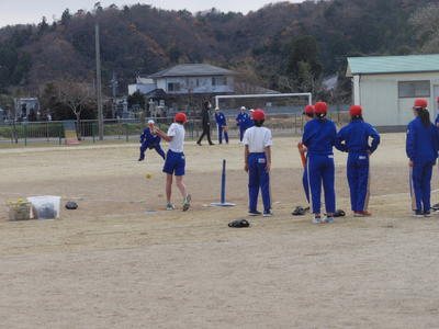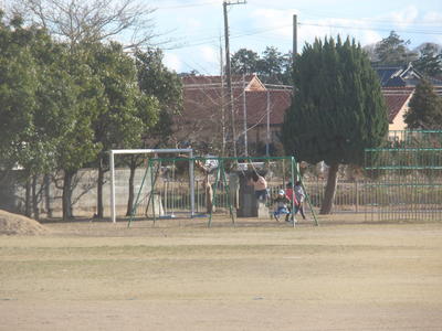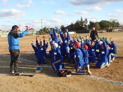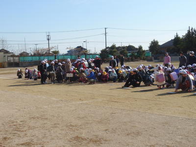 「児童クラブ」の子供たちは、強風の中、寒さに負けずに元気いっぱいです。