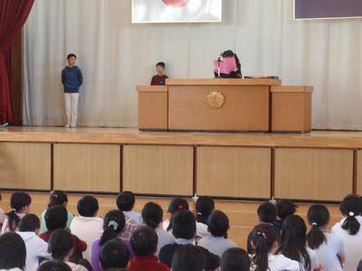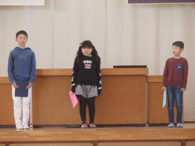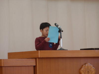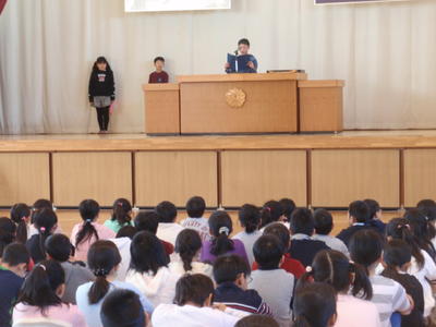 「2学期の反省と冬休みの目標」の発表(代表児童3名)