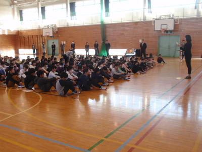 生徒指導担当から、冬休みの過ごし方の確認をしました。