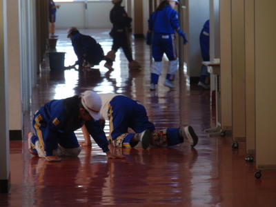 「愛校活動」 今年最後の清掃、前半はいつもの清掃場所の掃除をしました。