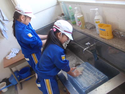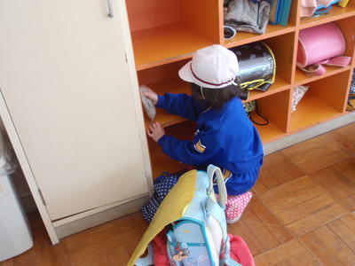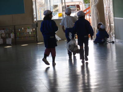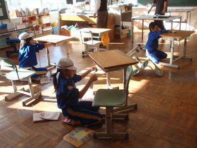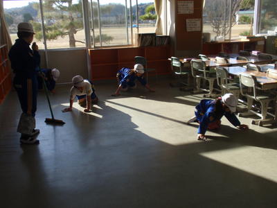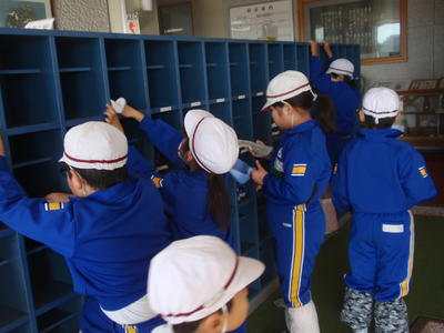 後半は、各学級で机やロッカー、下駄箱などのすす払いをしました。