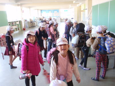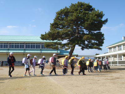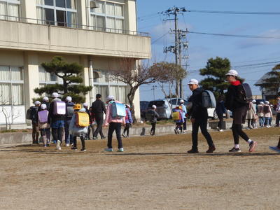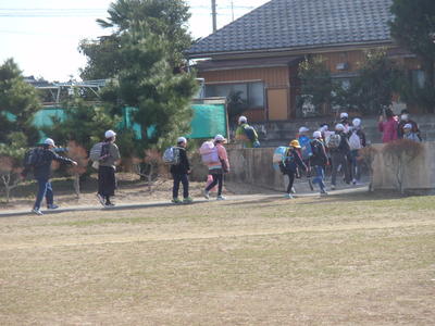 今日は、「一斉下校」で担当の先生と一緒に下校しました。