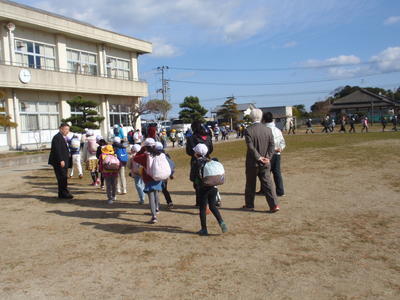 寒さが厳しい朝でしたが、保護者の皆様に見守られながら元気に登校してきた子供たち。その元気な声が、澄み切った青空に響いていました。