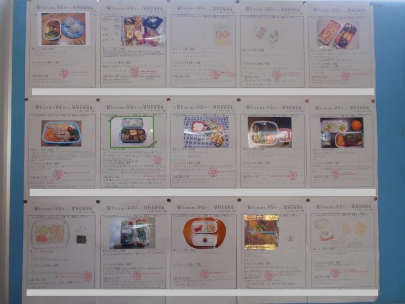 11月12日に実施した「親子ふれあい弁当デー」では、お忙しい中、ご協力いただきありがとうございました。お家の方が作ったお弁当を弁当箱に詰めた子、おかずを一品作った子、お弁当を全部一人で作った子、学年に応じていろいろな子がいましたが、どれも楽しい思い出になったようです。