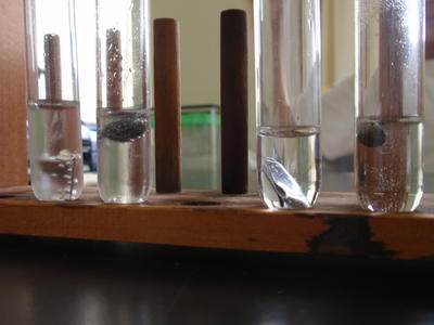 6年生の理科、「塩酸」と「炭酸水」2種類の酸性水溶液に、「アルミニウム」と「鉄」2種類の金属を入れ、金属の変化を観察します。