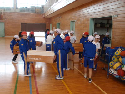 授業後の片付け。分担などを指示しなくても、協力してあっという間に片づけてしまう3年生。素晴らしい!