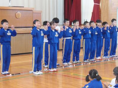 今日の全校集会は「みてみてタイム」。4年生の発表でした。手話教室で学んだ手話を紹介し、みんなでやってみました。その後、「もものけ姫」をリコーダーで演奏しました。