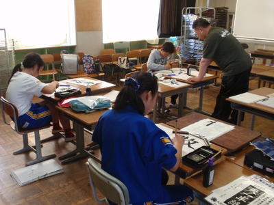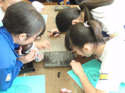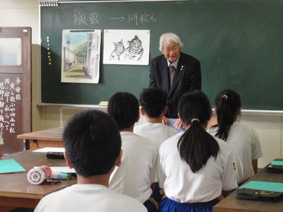 版画家の 坂本 勇 先生 を講師にお迎えした「版画特別授業」が、6年生で行われました。