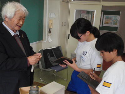 本日、「高久なめつ会」会長の 鈴木 丈夫 様と、事務局長の 横田 宗男 様が来校され、本校の教育活動に役立てて欲しいと、多額の図書カードを寄贈してくださいました。