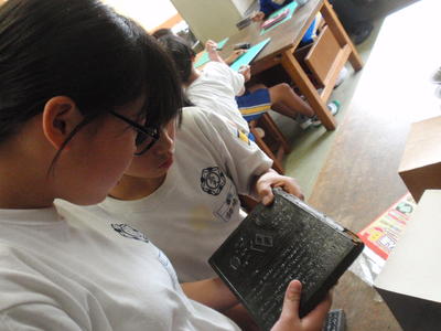 昔の教科書の「版木」を見せていただきましたが、文字を浮き彫りにする細かさと技に感心しながら、古の職人の誇りを感じとっているようでした。