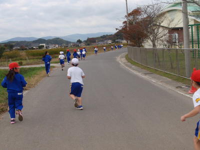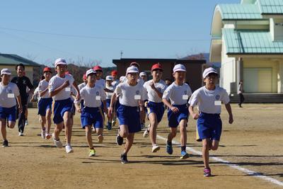「業間のマラソンタイム」学年ごとに走るコースを分けて、全校生で5分間走を行っています。