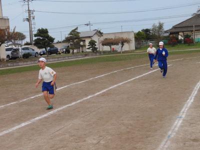授業でも業間でも持久走の練習続きで、嫌気がさしているかな?と思いきや、たくさんの児童が練習に参加し、自分を追い込んで頑張っていました。日々、たくましく成長している子供たちの姿がうれしく、「頑張れ~!」と声援を送らずにはいられませんでした。