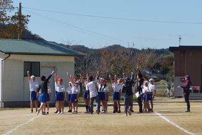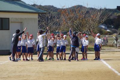 4年生 矢吹さんと担任と一緒に、気合を入れてスタートです!
