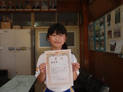 「ロジック算数」のレベル10達成者が、またまた4年生から出ました。校長室で賞状を贈りました。おめでとう!