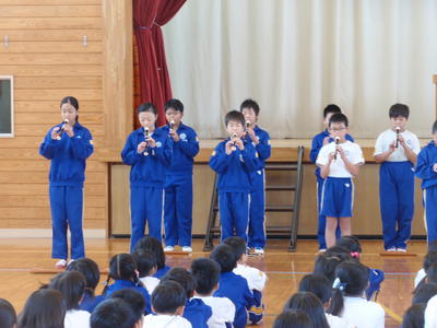 今日の全校集会は「みてみてタイム」5年生の発表でした。