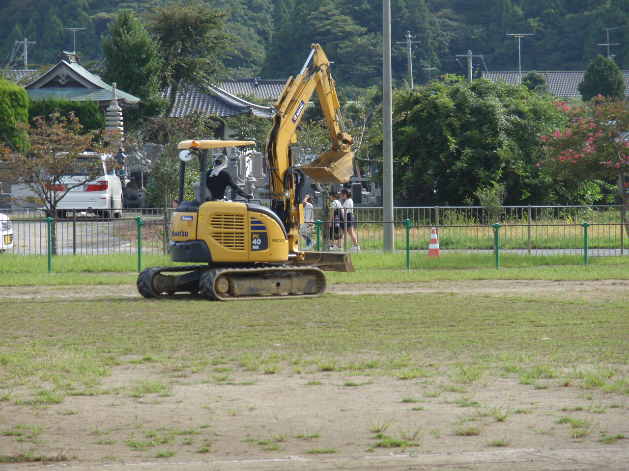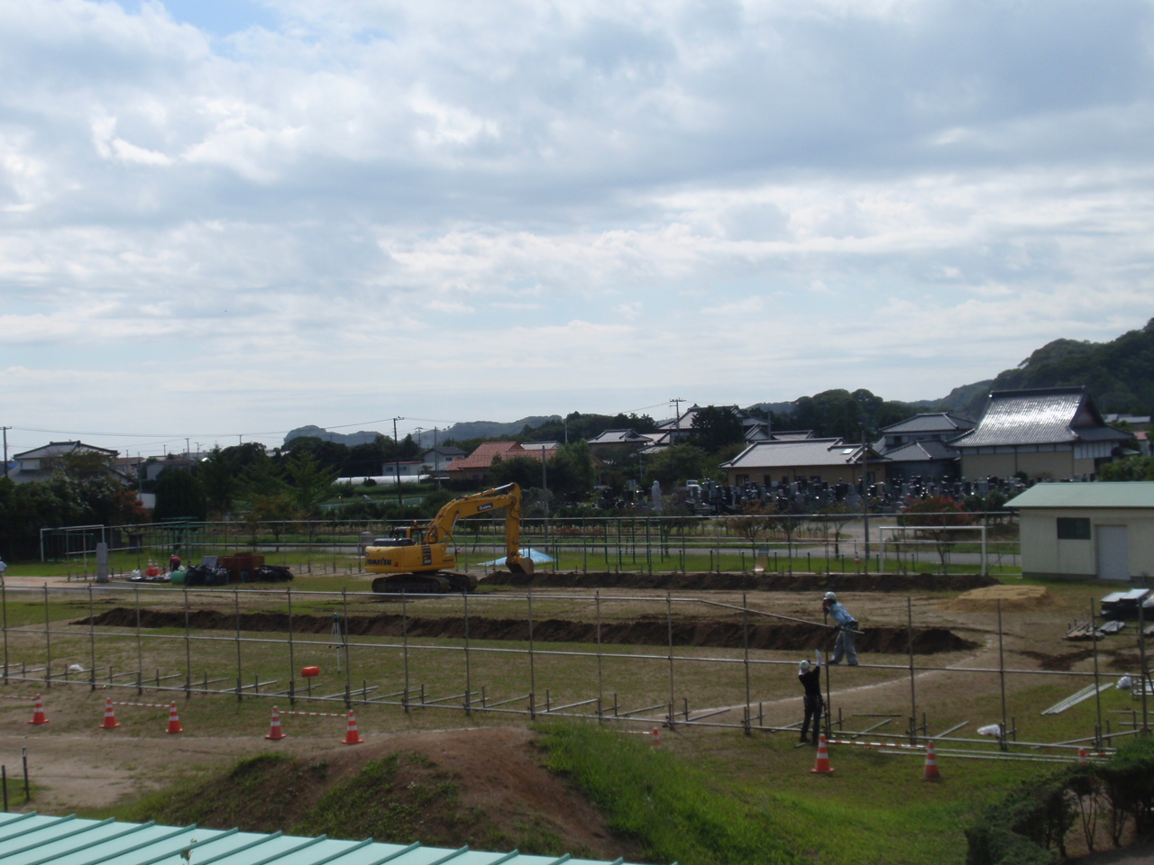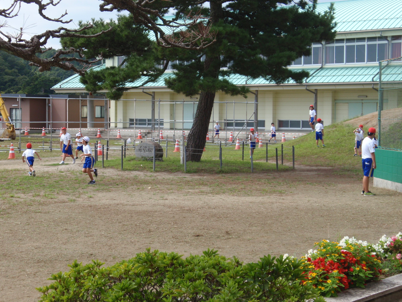 子供たちは、狭くなった校庭を元気に走り回っています。作業されている業者の方も、「休み時間」や「登下校時」には、子供たちの安全を考慮し、作業を中断するなどの措置をとってくれています。