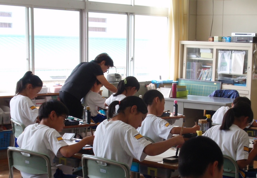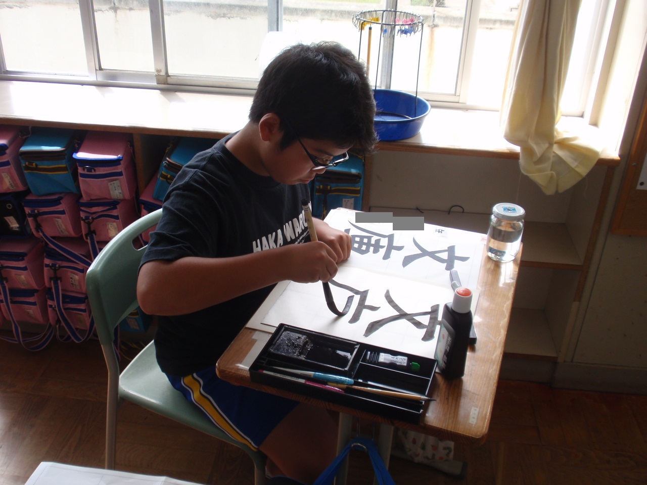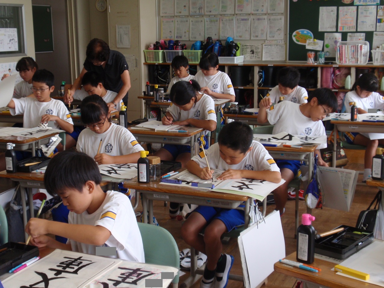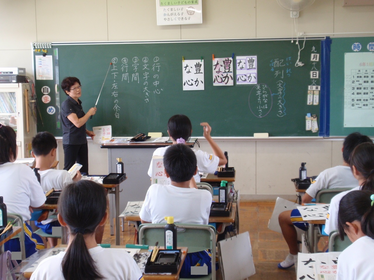 先週に続き、本日も、書家の 丹 美枝 先生 にお越しいただき、5・6年生の書写のご指導をいただきました。先生のポイントを整理した的確なご指導に、子供たちは、みるみる上達しています。